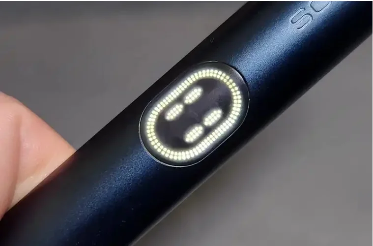 然後,黑色觸摸屏將顯示從底部到左右均勻亮起的圓環,並且一旦它們在20秒後到達頂部並且整個圓環和中間兩個點亮起就證明加熱完了.